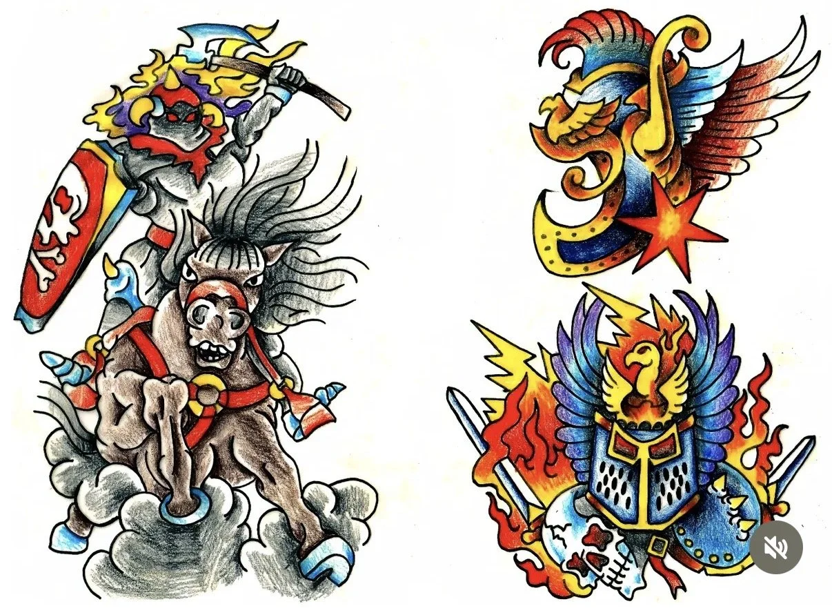 A selection of Rob’s available tattoo designs. Prices depend on overall size and placement. Screengrab the one you like and get in touch to find out more!